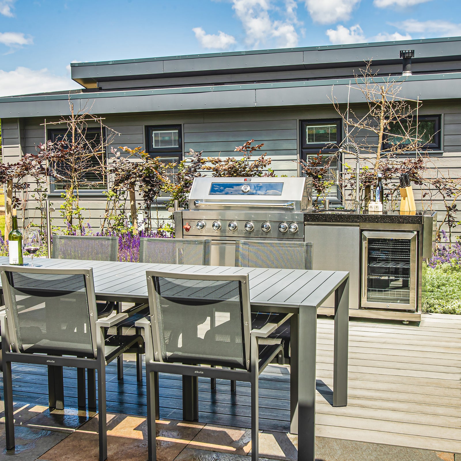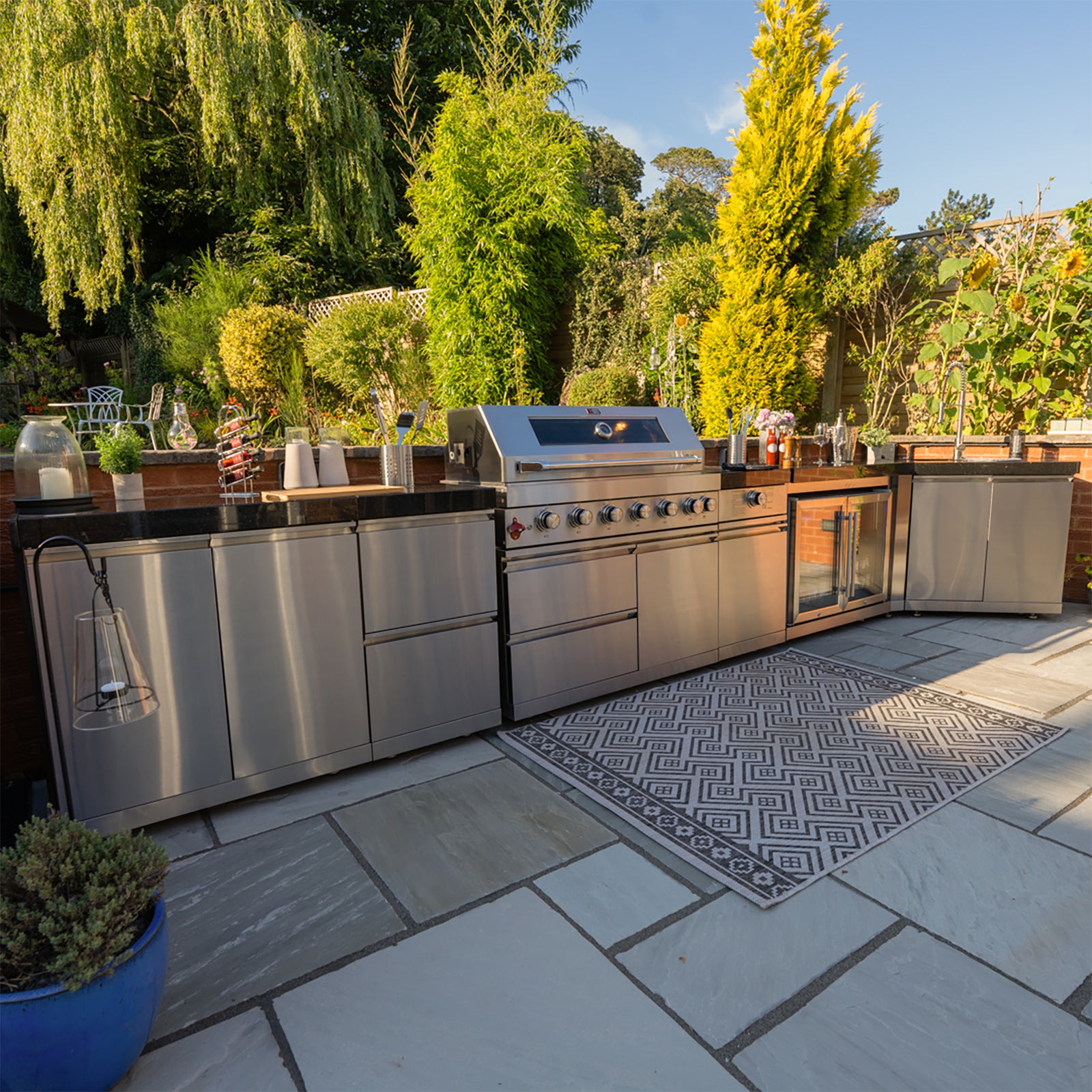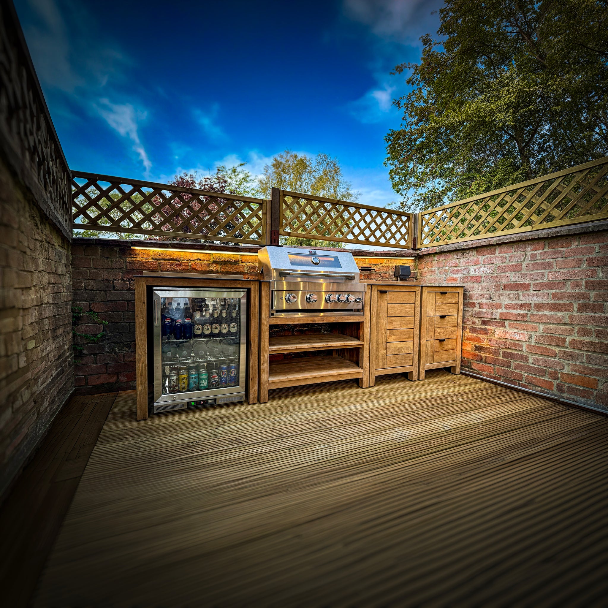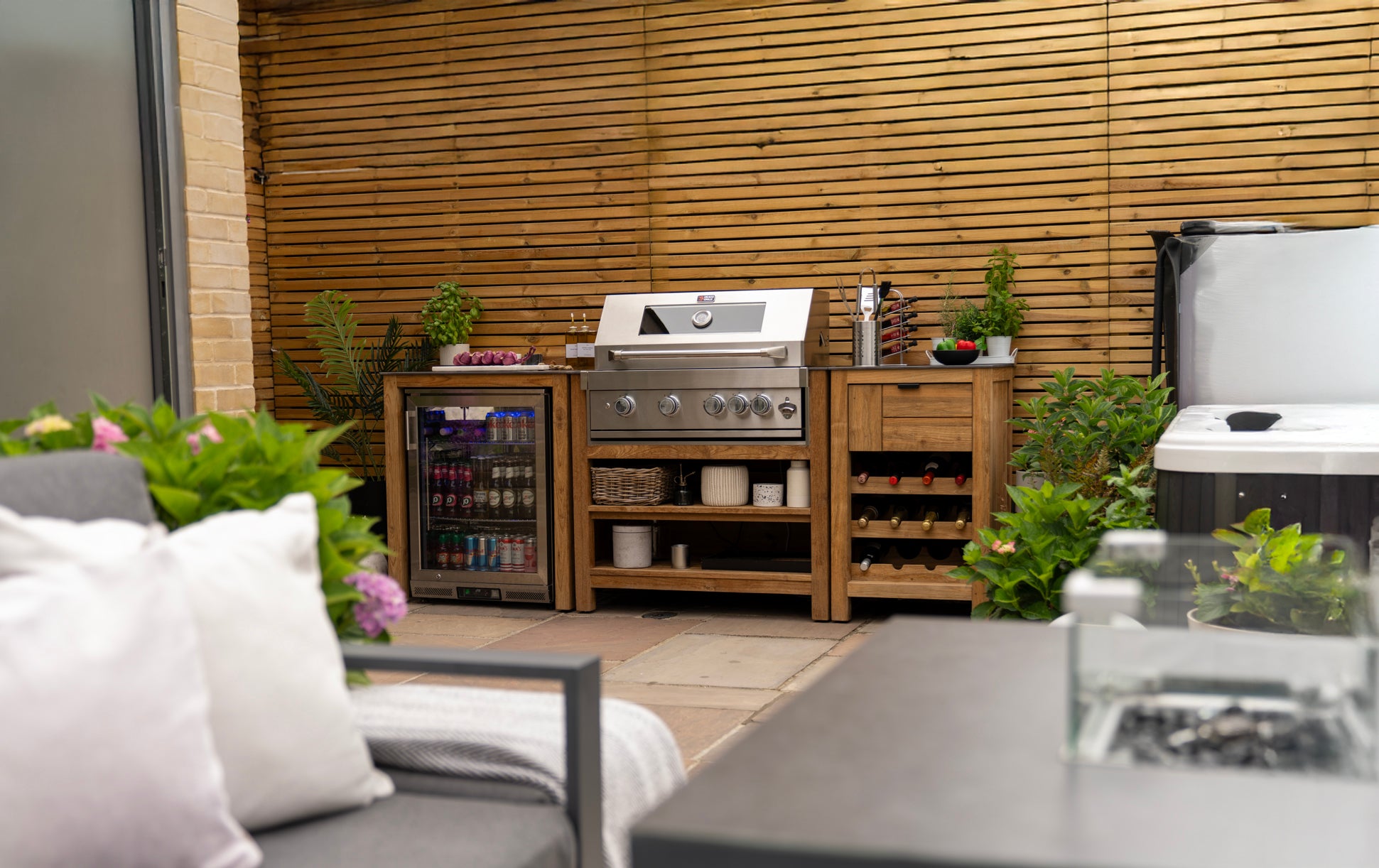 The combination of the gas barbecue and sink & fridge unit in our modular range is a popular one for small outdoor areas...