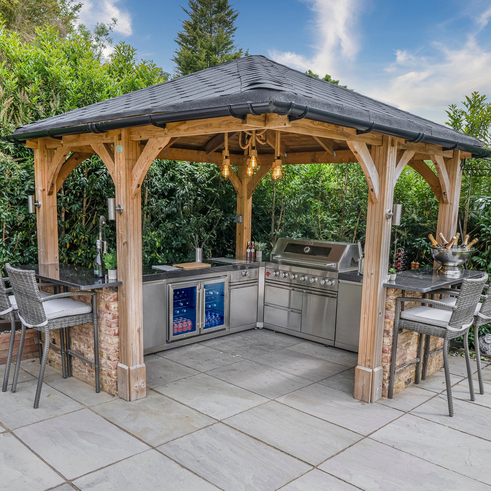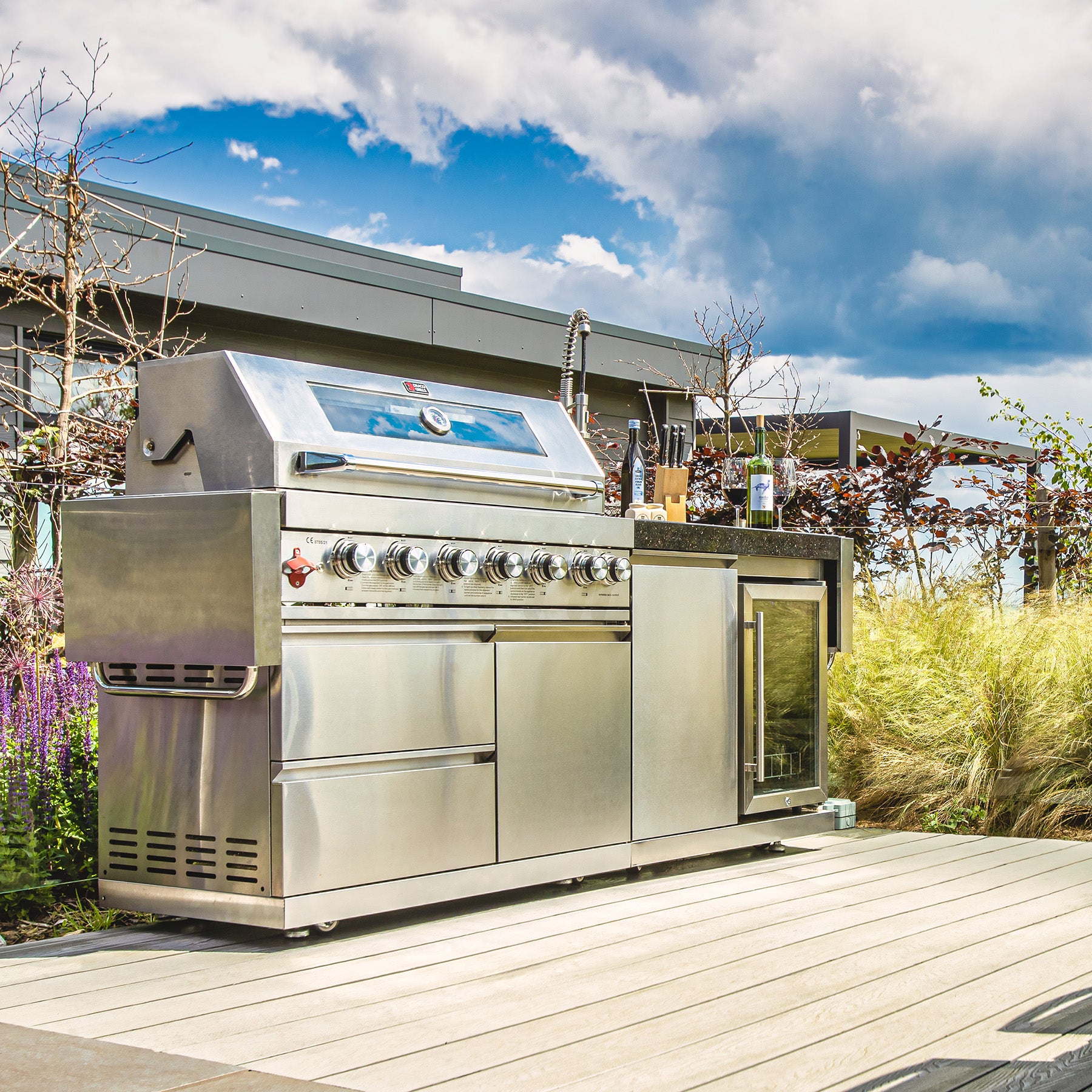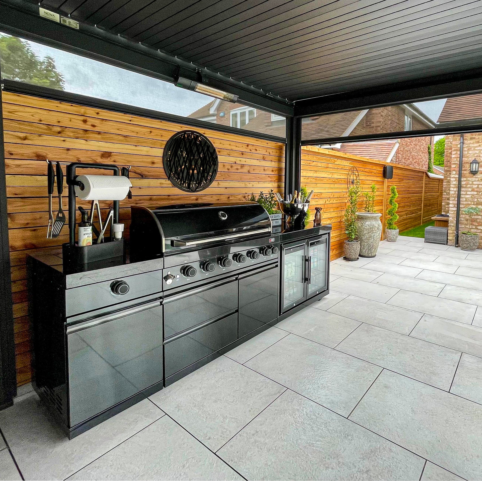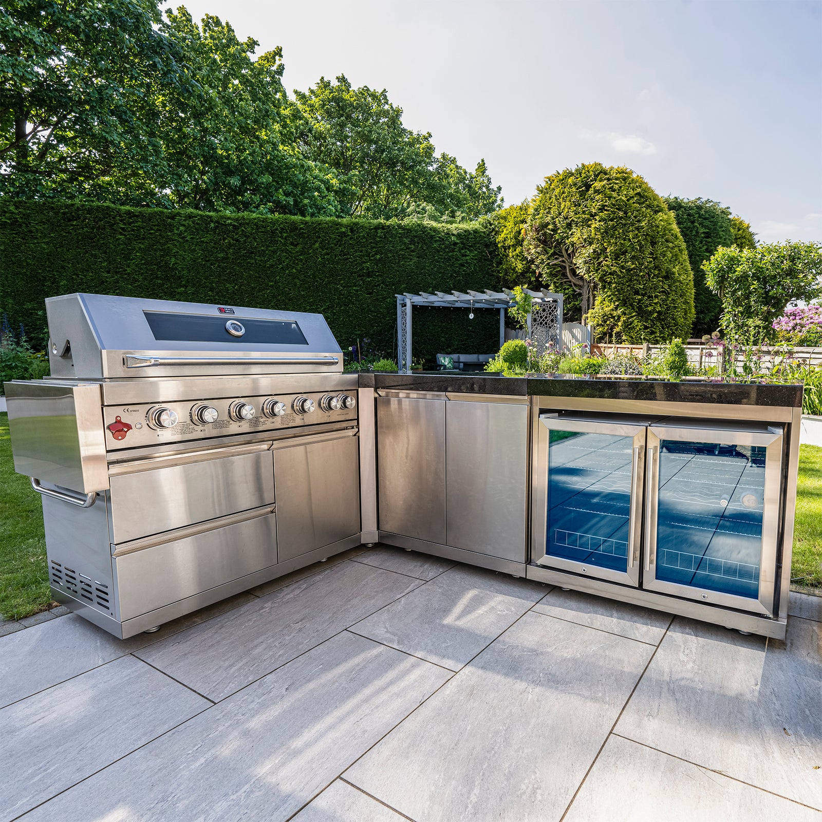 Situated at a hotel in County Durham, this small outdoor kitchen features the 6 Burner Gas BBQ with a sink & fridge unit.