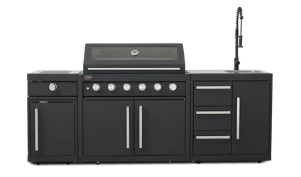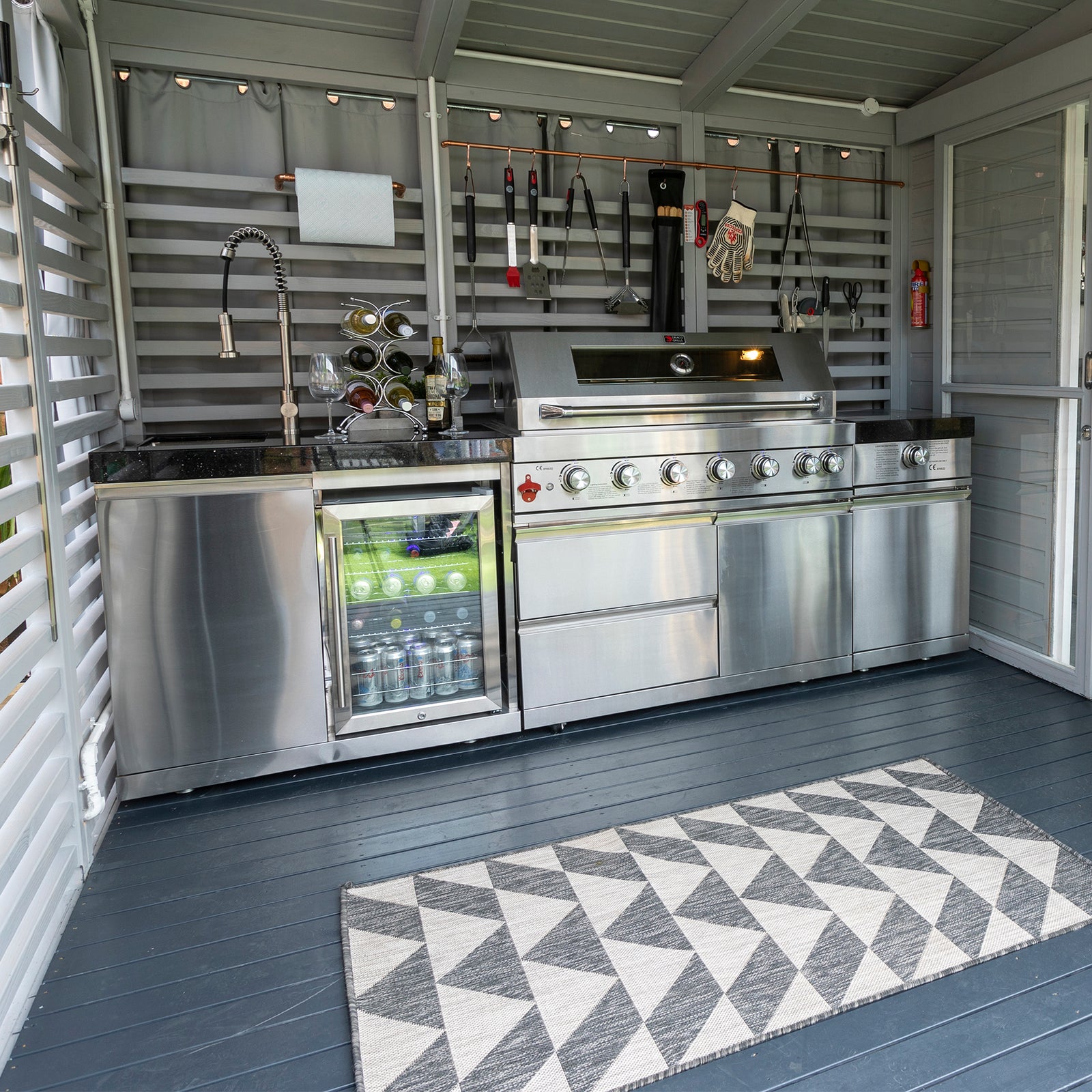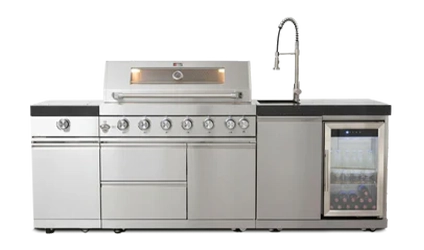 This modular outdoor kitchen also comes equipped with a single fridge next to the sink. Your outdoor gathering experience will be enhanced if your outdoor kitchen has a fridge...