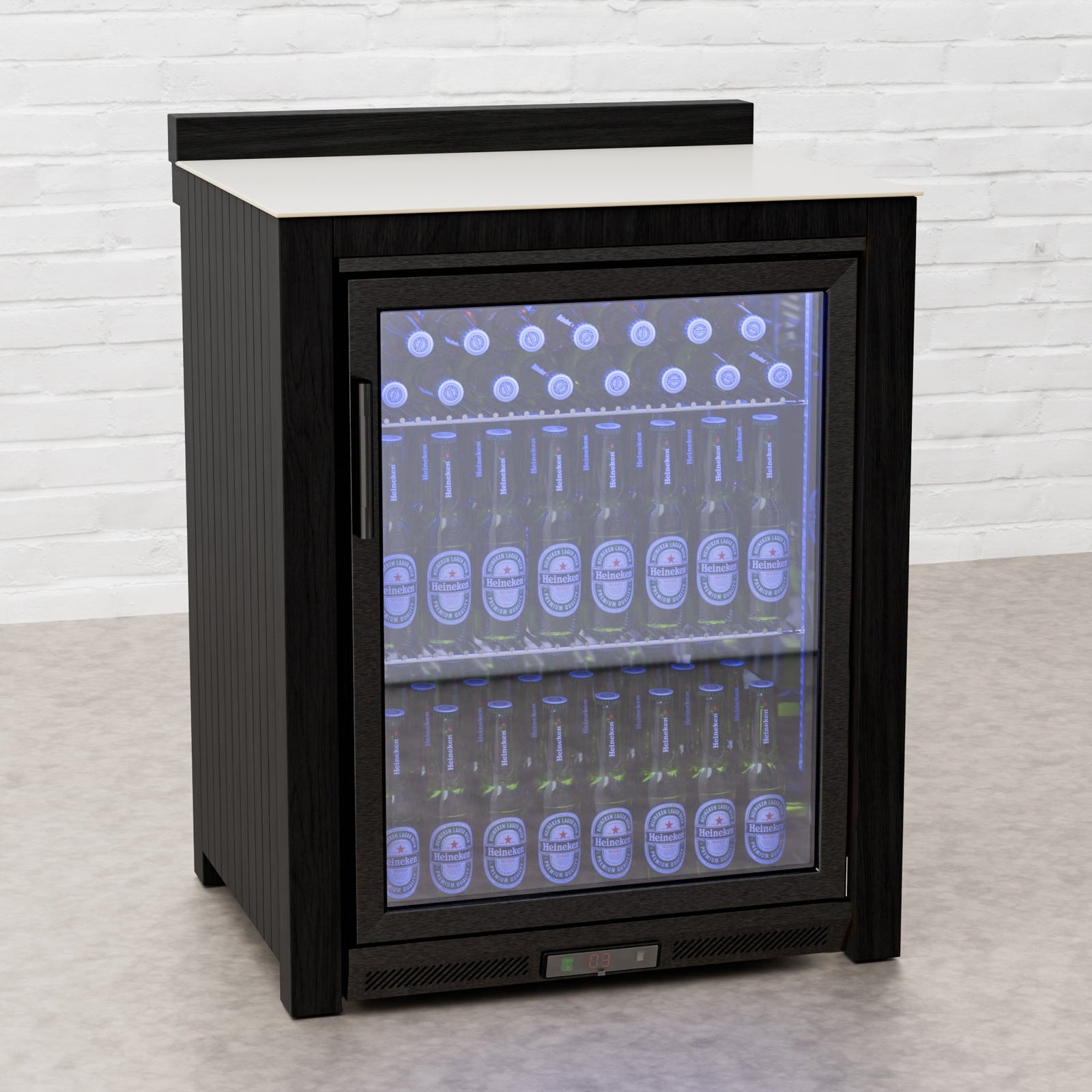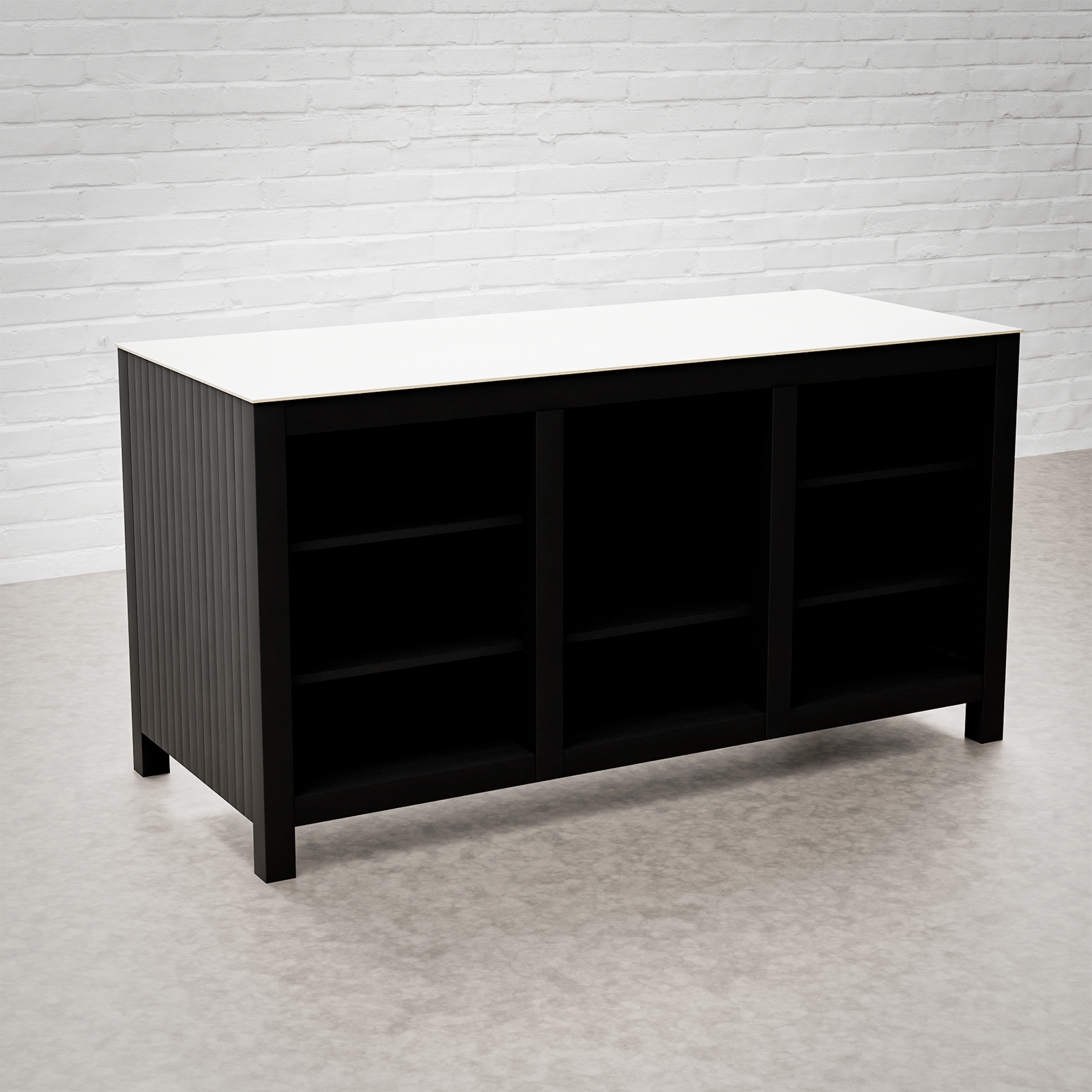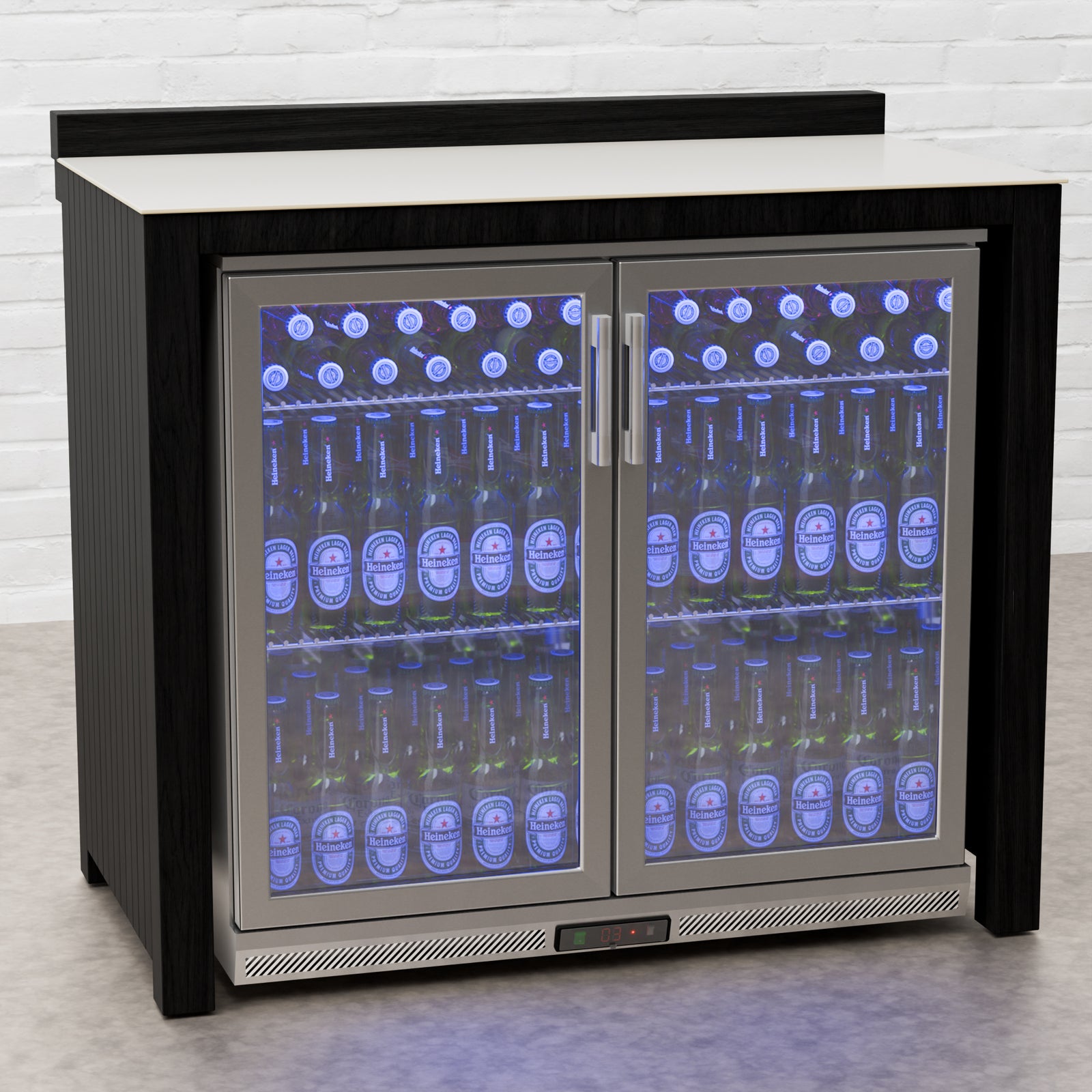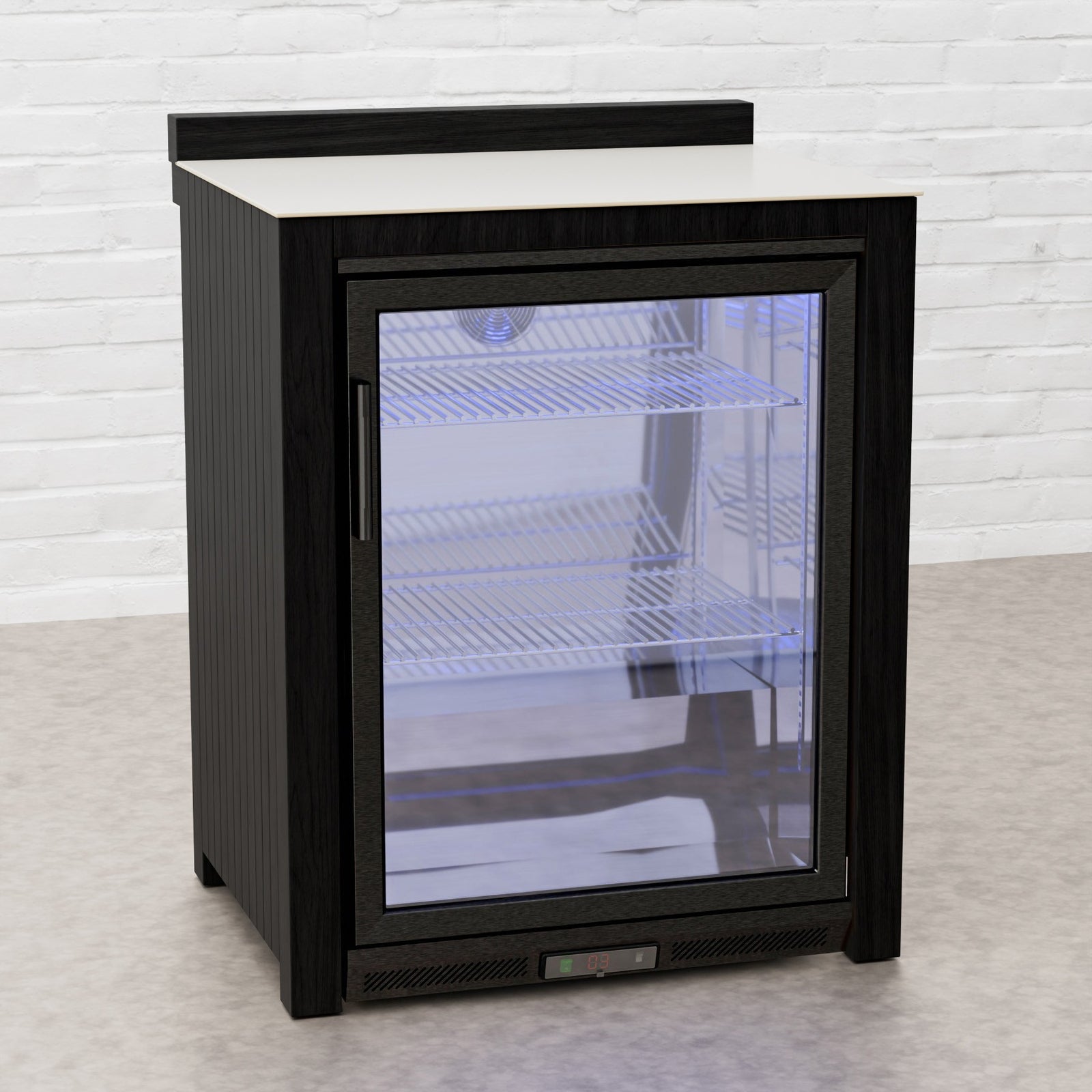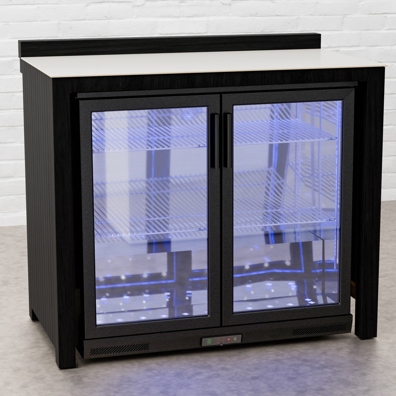 Every Carbon Line unit blends robust materials with practical design. Heavy-duty castor wheels with levelling feet make installation and adjustment simple, while clean black surfaces — paired with sintered stone or granite worktops depending on the module — create a cohesive, architectural aesthetic.