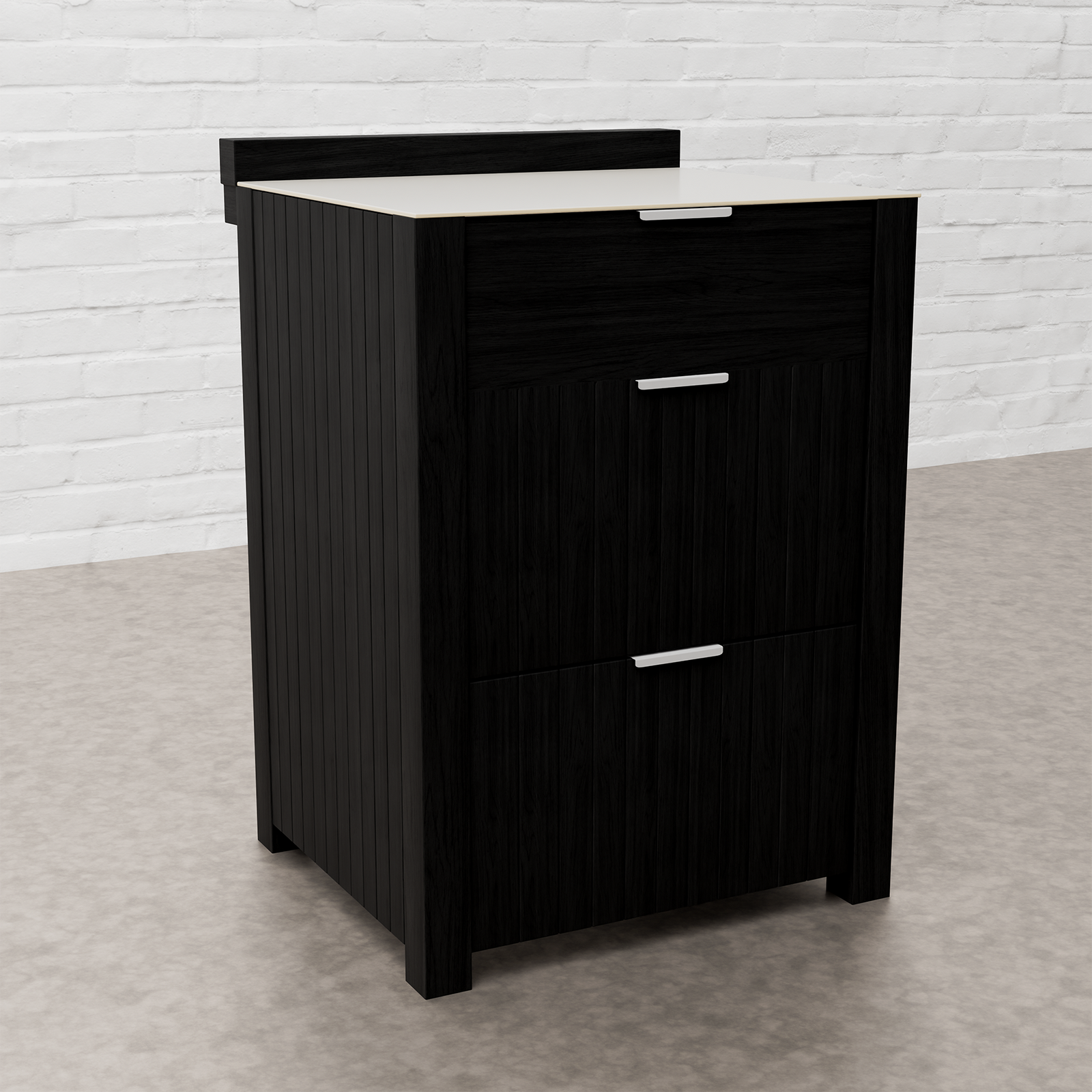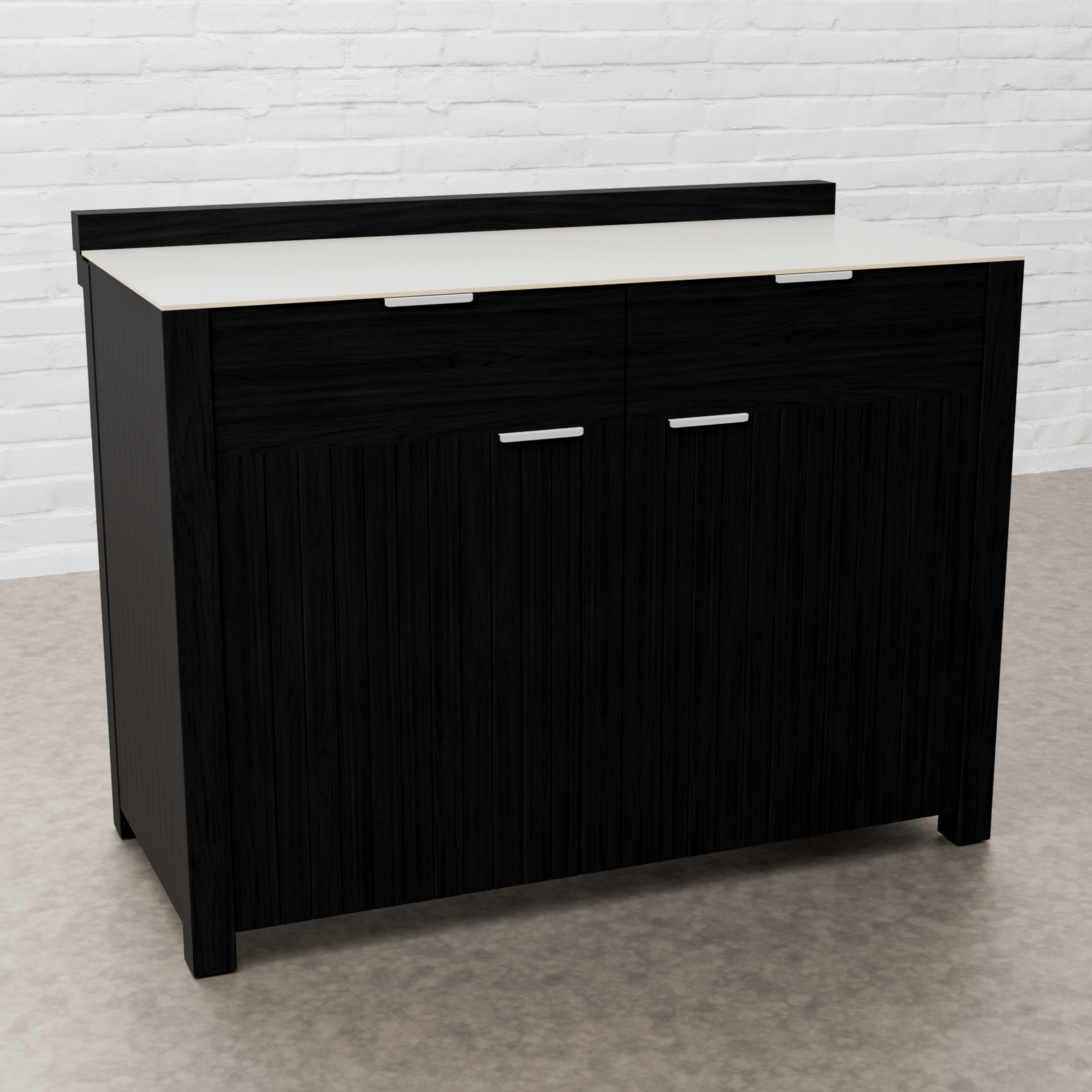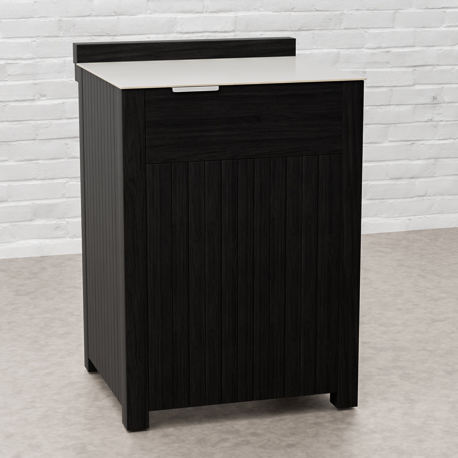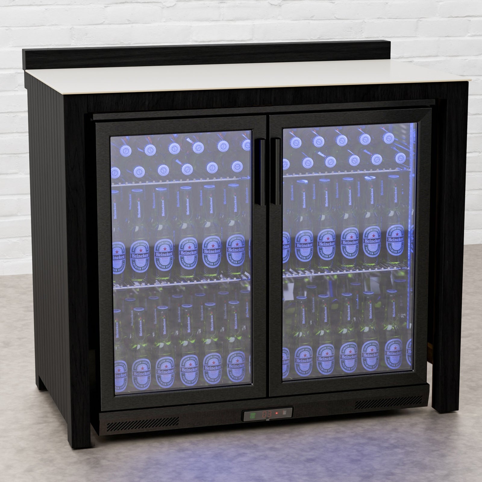Every Carbon Line unit blends robust materials with practical design. Heavy-duty castor wheels with levelling feet make installation and adjustment simple, while clean black surfaces — paired with sintered stone or granite worktops depending on the module — create a cohesive, architectural aesthetic.