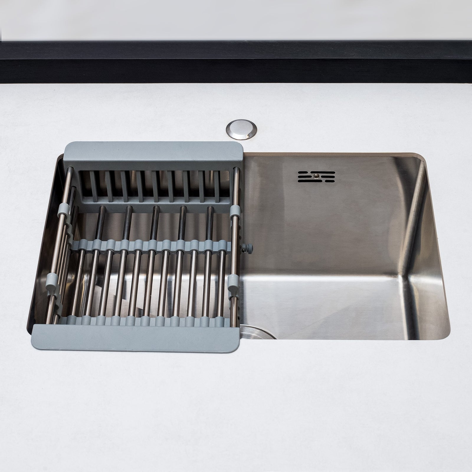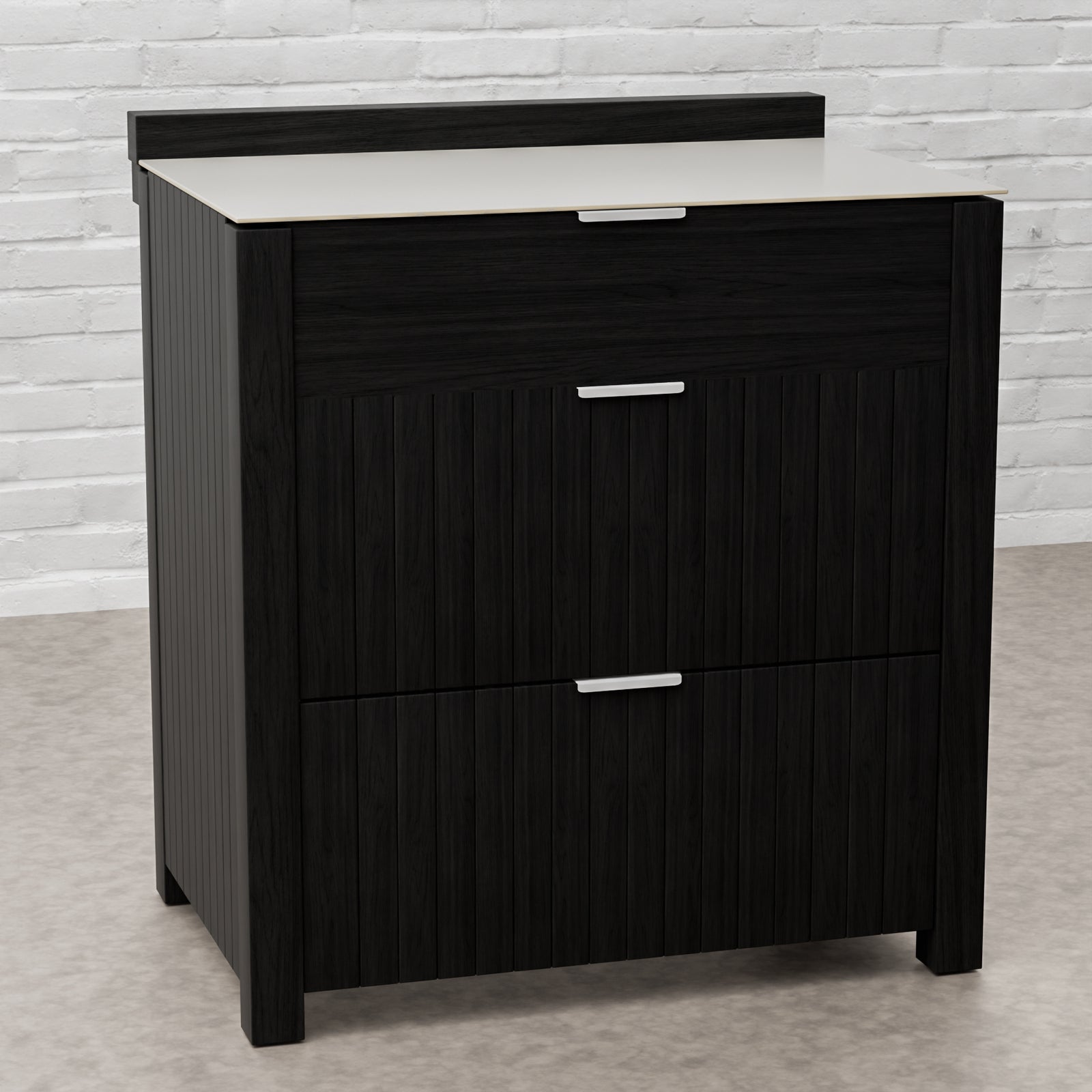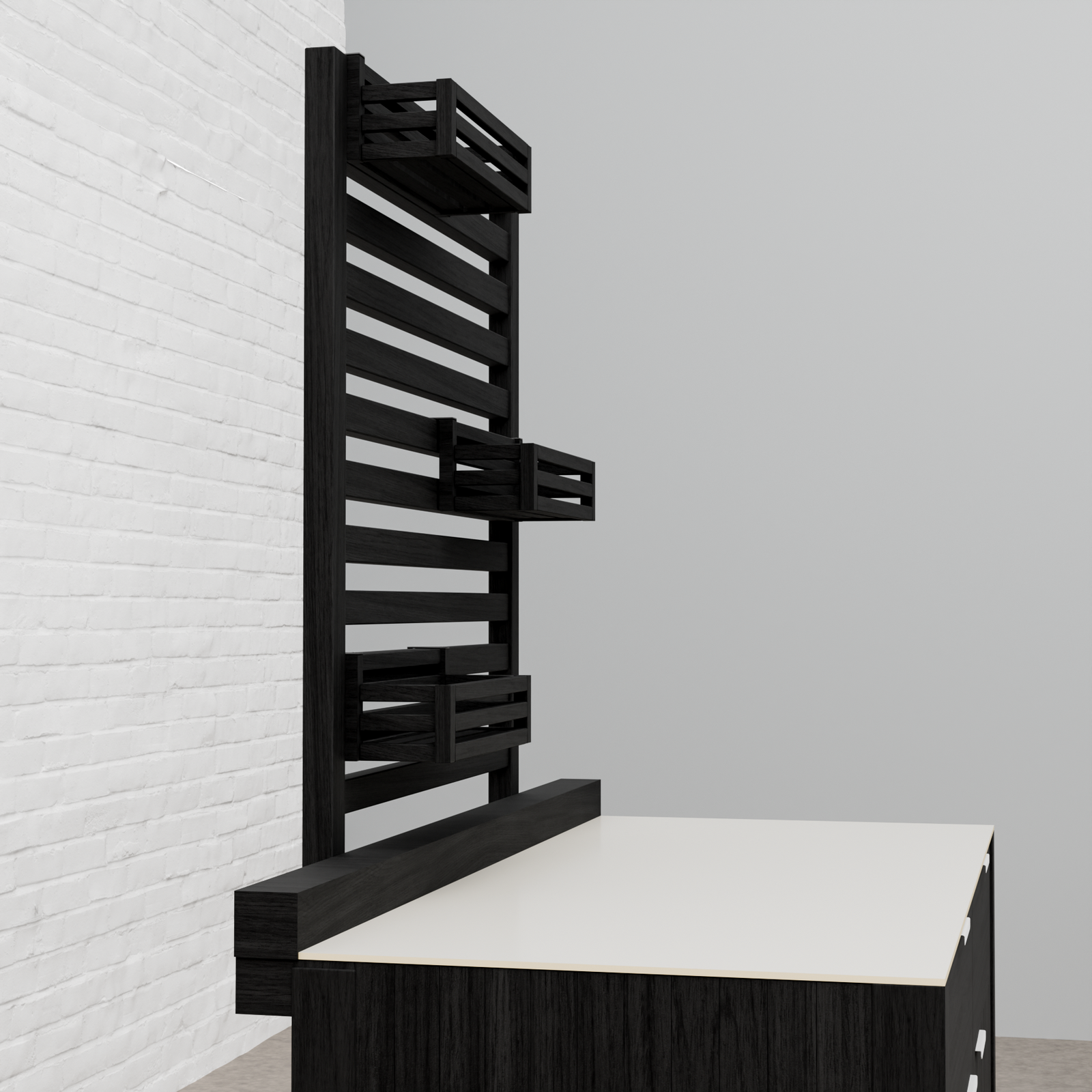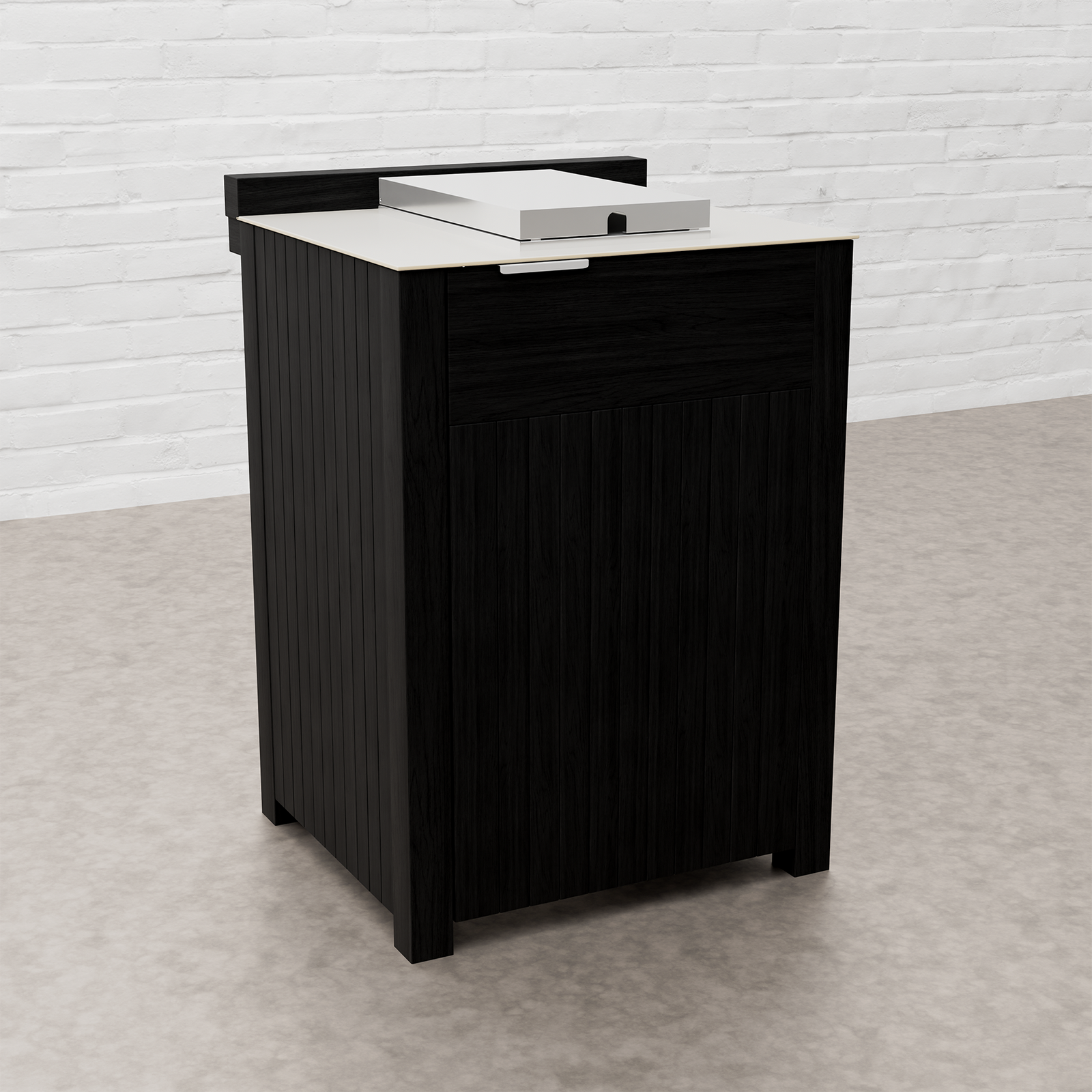 Every Carbon Line unit blends robust materials with practical design. Heavy-duty castor wheels with levelling feet make installation and adjustment simple, while clean black surfaces — paired with sintered stone or granite worktops depending on the module — create a cohesive, architectural aesthetic.
